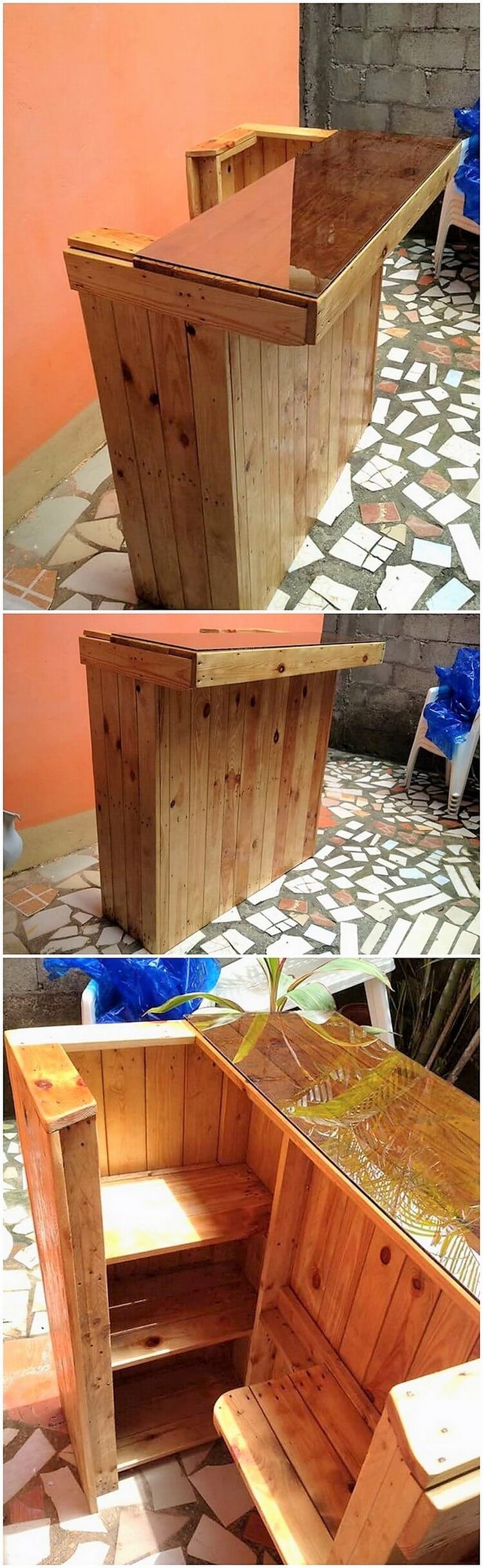 Return to "Adorable and Distinctive Recycled Wood Pallet Projects" Pallet Counter Table Next Previous