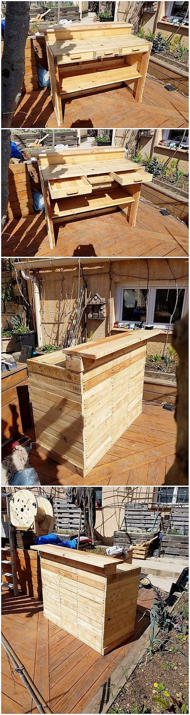 Return to "Adorable and Distinctive Recycled Wood Pallet Projects" Pallet Counter Table or Desk Next Previous