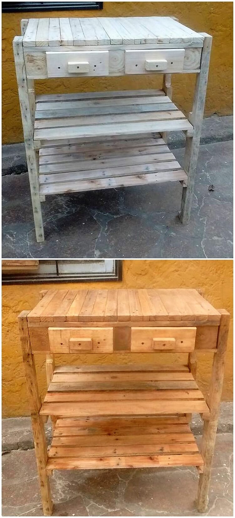 • Recycled Pallet Table with Drawers