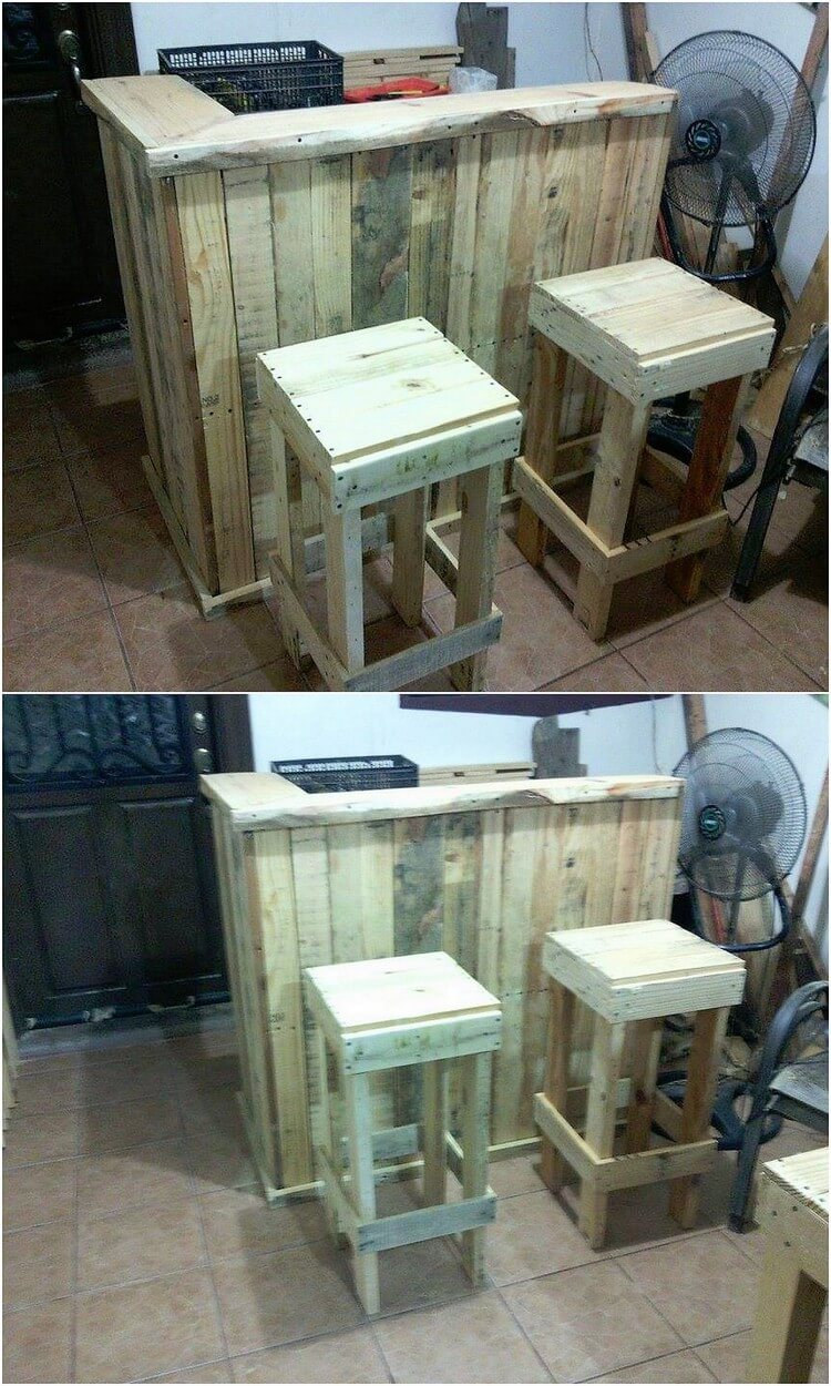 Return to "Remarkable Shipping Wood Pallets Recycling Ideas" Pallet Counter Table and Stools Next Previous