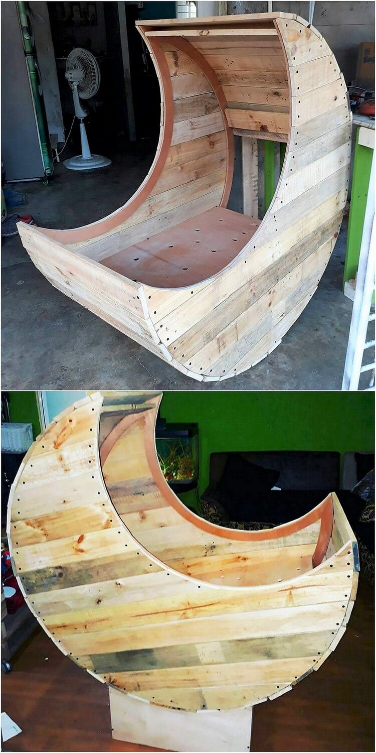 Return to "Simple and Creative Ideas for Wood Pallet Recycling" Pallet Half Moon Cradle Chair (2) Next Previous