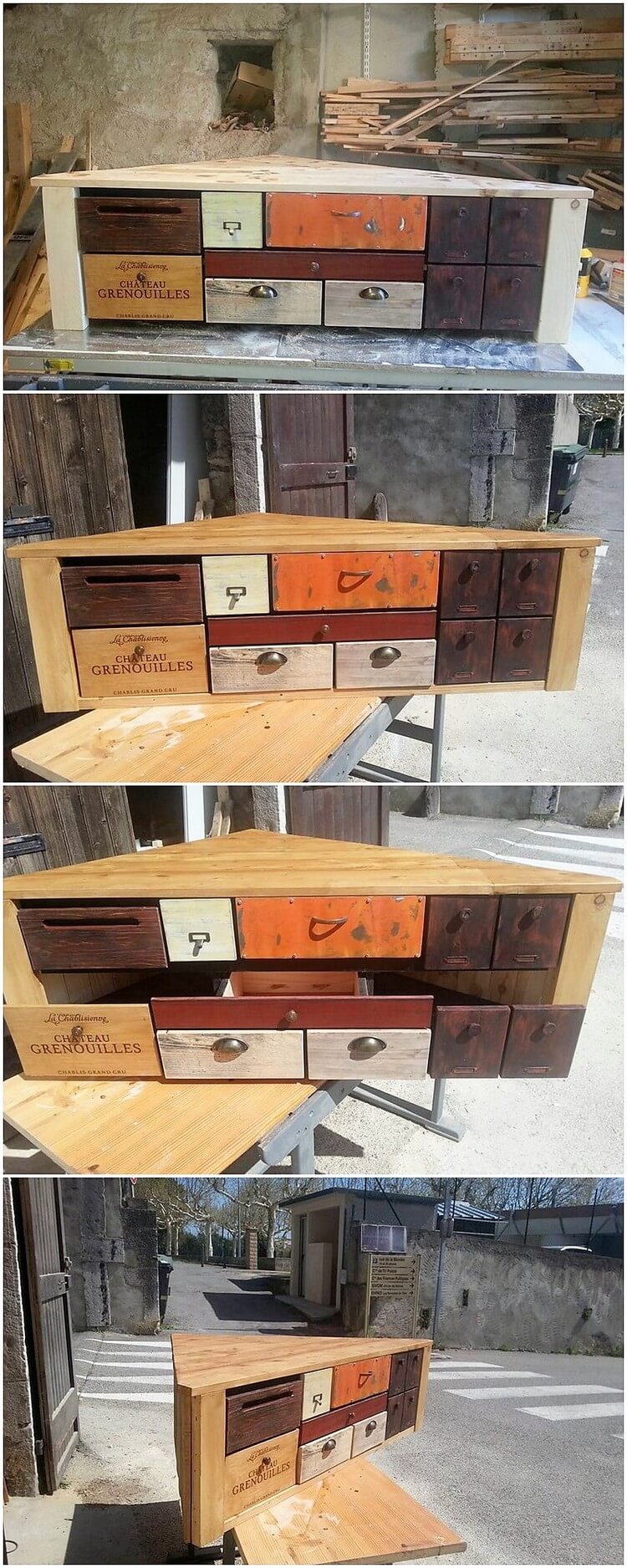 Return to "Stylish and Beautiful DIY Wood Pallet Projects" Pallet Corner Table with Drawers Next Previous