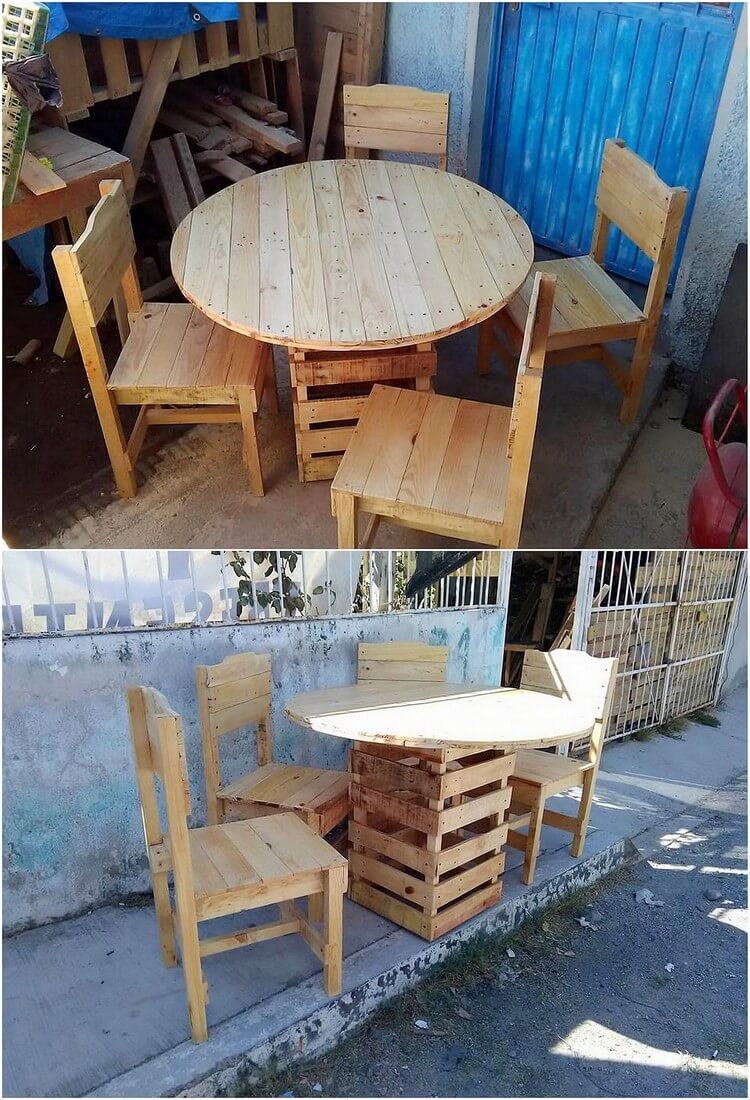 Return to "Wondrous Ideas for Wasted Wood Pallets Reusing" Round Top Pallet Table and Chairs Next Previous